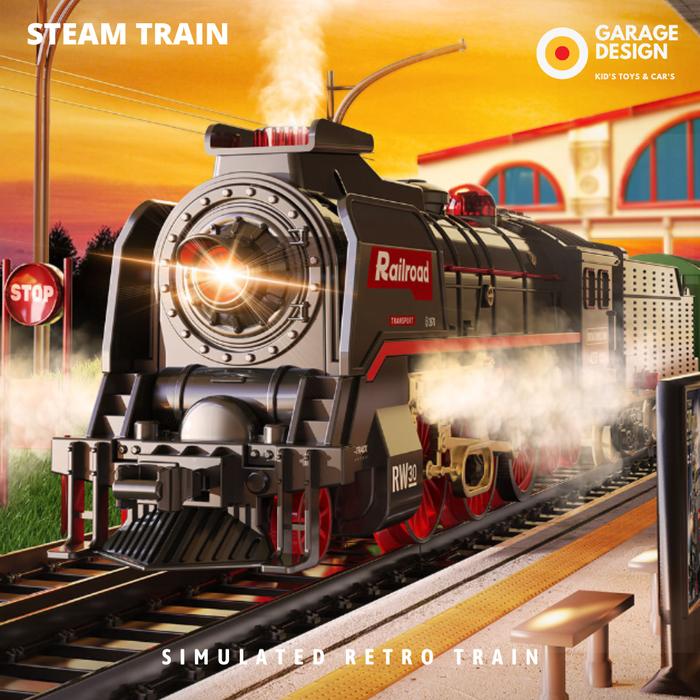 Mainan Miniatur Kereta Klasik Roda Dapat Berjalan (TERDAPAT LAMPU, SUARA & UAP AIR) - Mainan kereta