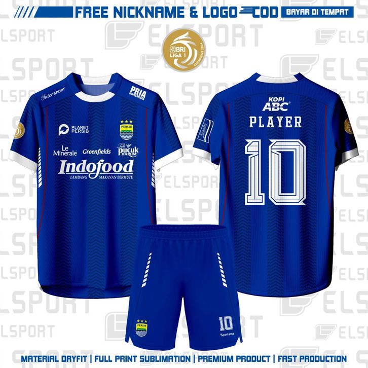 Jersey Home Persib Bandung Bri Liga 1 Musim 2024 & 2023 Full Printing Gratis Pasang Nama& No