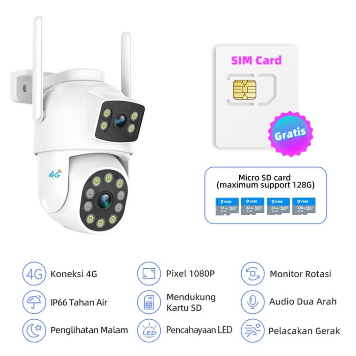 Gratis Ongkir - 4g Cctv Di Luar Ruang Outdoor Dual Lens Camera Hd Multi Penglihatan Malam Lensa Ganda Kamera Keamanan