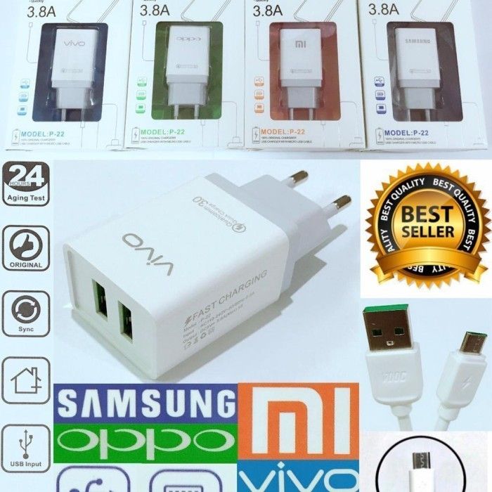 Gratis Ongkir - Charger Casan Branded 2 Usb Port 3.1a F-002 Qualcomm 3.0 Micro Usb Kwalitas Bagus