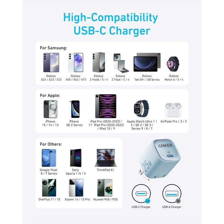 Gratis Ongkir - Anker 25w 45w Gan Usb C Charger, Compact Support Pps & Fast Charging for Samsung Iphone 16 15 - A2656