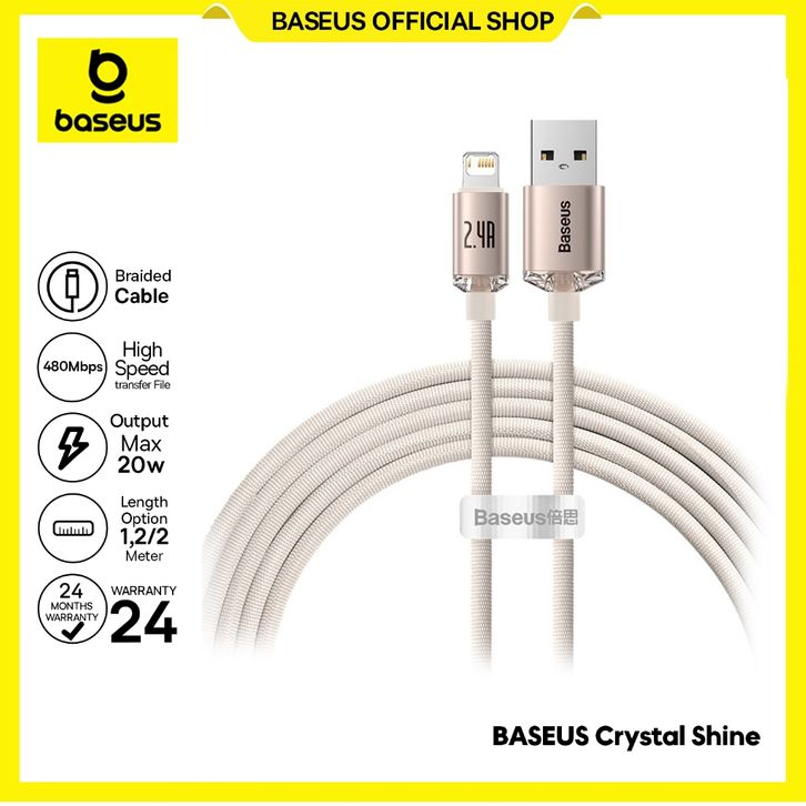Gratis Ongkir - Baseus Cable Data Crystal Shine Series Usb to Ip 2.4a Fast Charging Kabel 1.2m & 2m