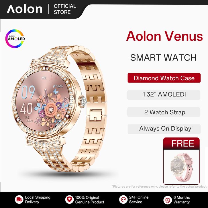 Gratis Ongkir - Aolon Venus Jam Tangan Pria Wanita Diamond Amoled Display Custom Wallpaper 24/7 Health Monitoring Smartw