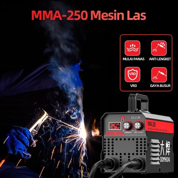 DOMHOAI Mesin Las MMA-250 Inverter Las Listrik IGBT Portabel Tampilan Digital Definisi Tinggi Set Lengkap Aksesoris