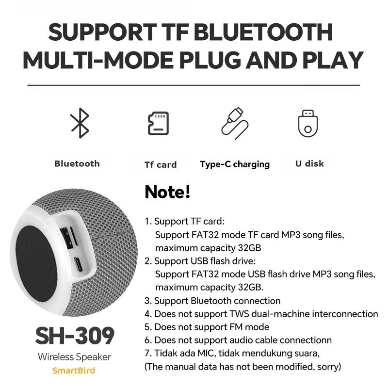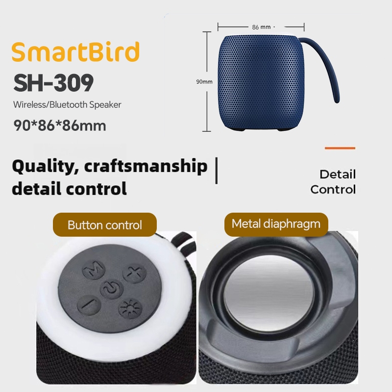 [Star]SmartBird Speaker SH309 Mini Portable Wireless Bluetooth Small Audio RGB Colorful Lighting Fabric Speaker Outdoor