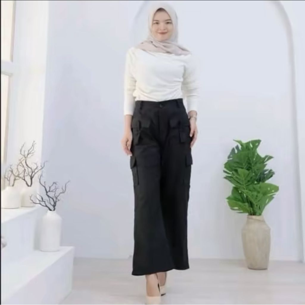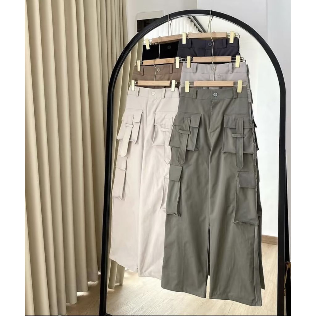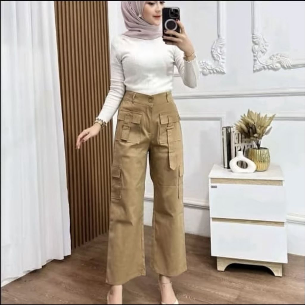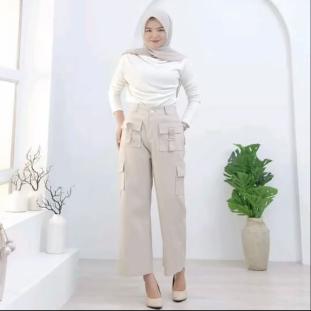 Timelesstrend Yura Cargo Pants Highwaist Celana Panjang Cargo Kulot Wanita Highwaist Baggy Pants Kekinian Casual