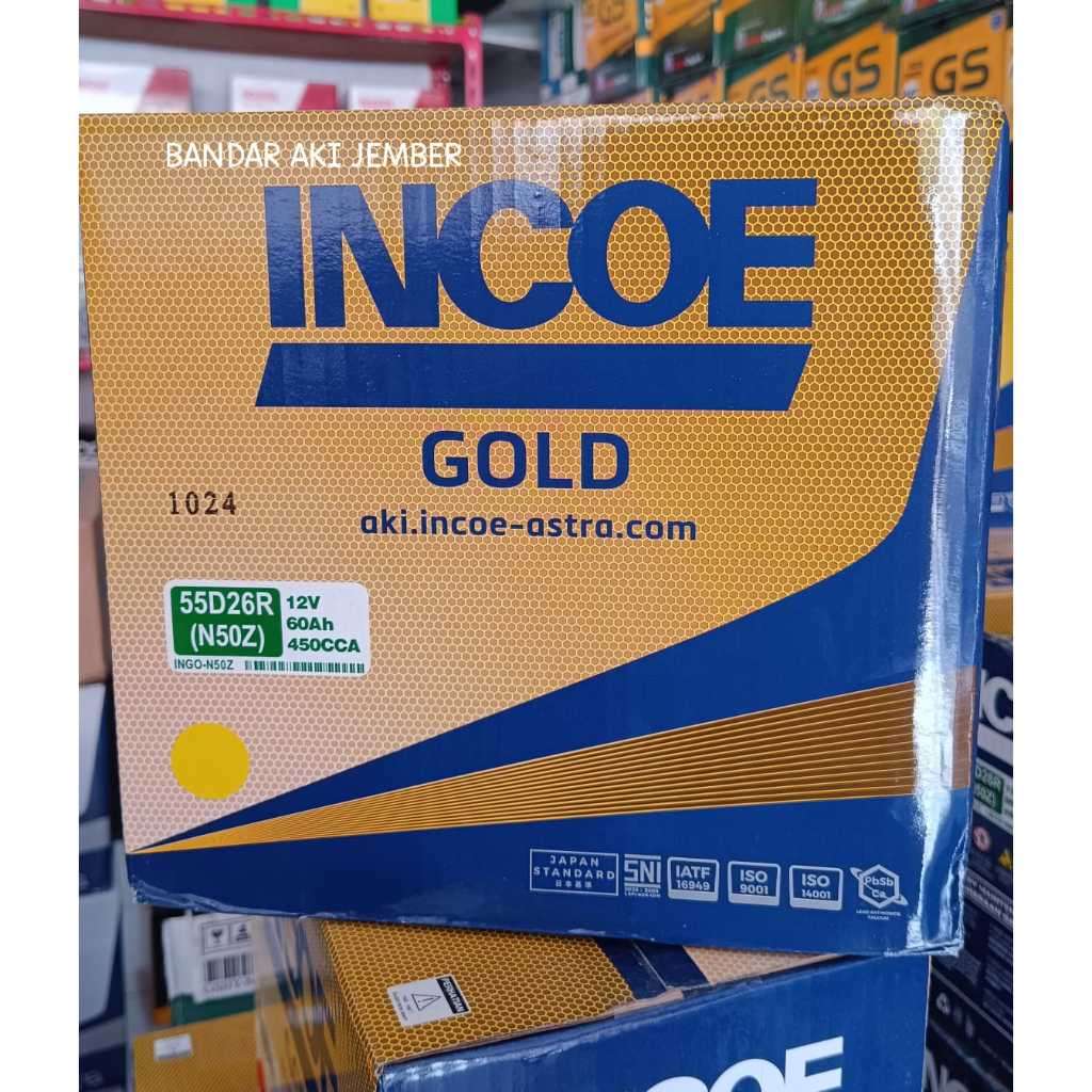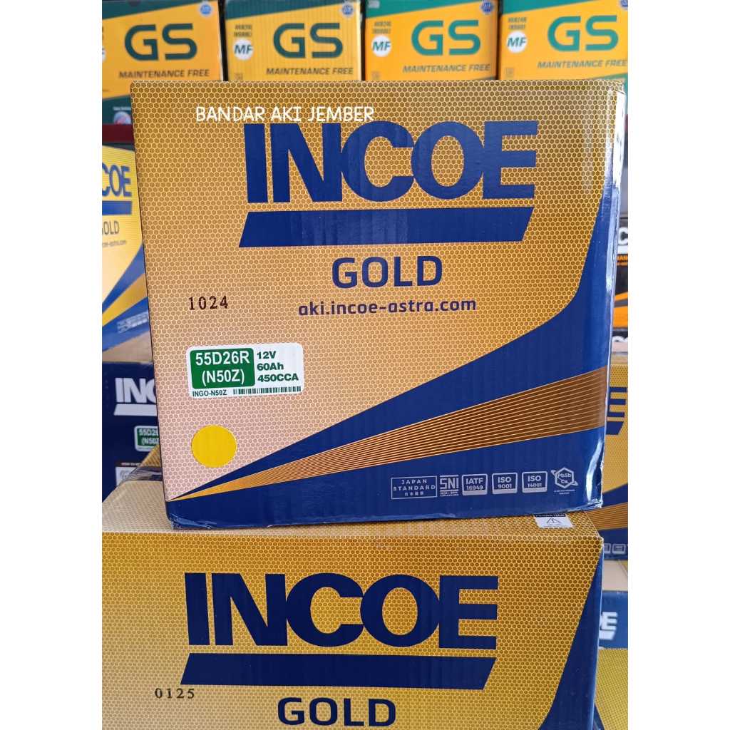 Aki mobil Incoe gold N50Z / 55D26R 60 Amper aki basah Cold Diesel, Timor, Kijang Kapsul