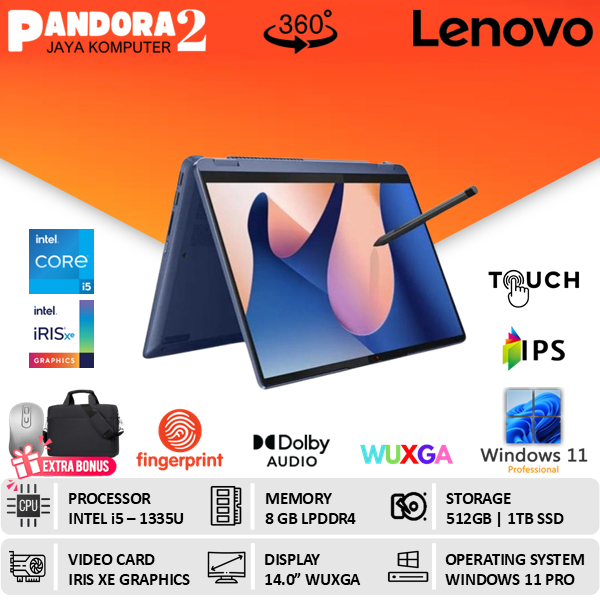 Lenovo Ideapad Flex 5 14 2 in 1 Intel i5-1335U 8GB 512GB 14.0 Wuxga IPS Touch Win 11 Pro