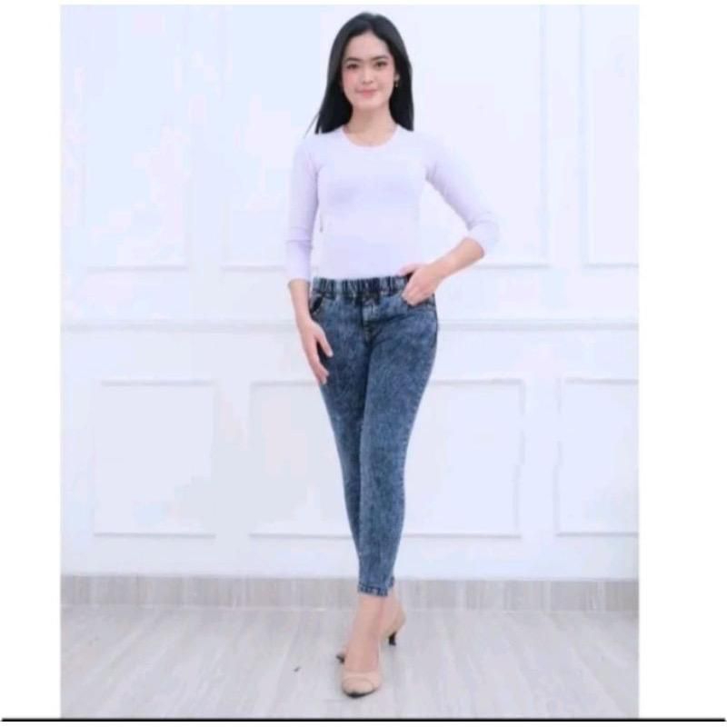 Celana Jeans Wanita Jumbo - Pinggang Karet - Denim Street Melar