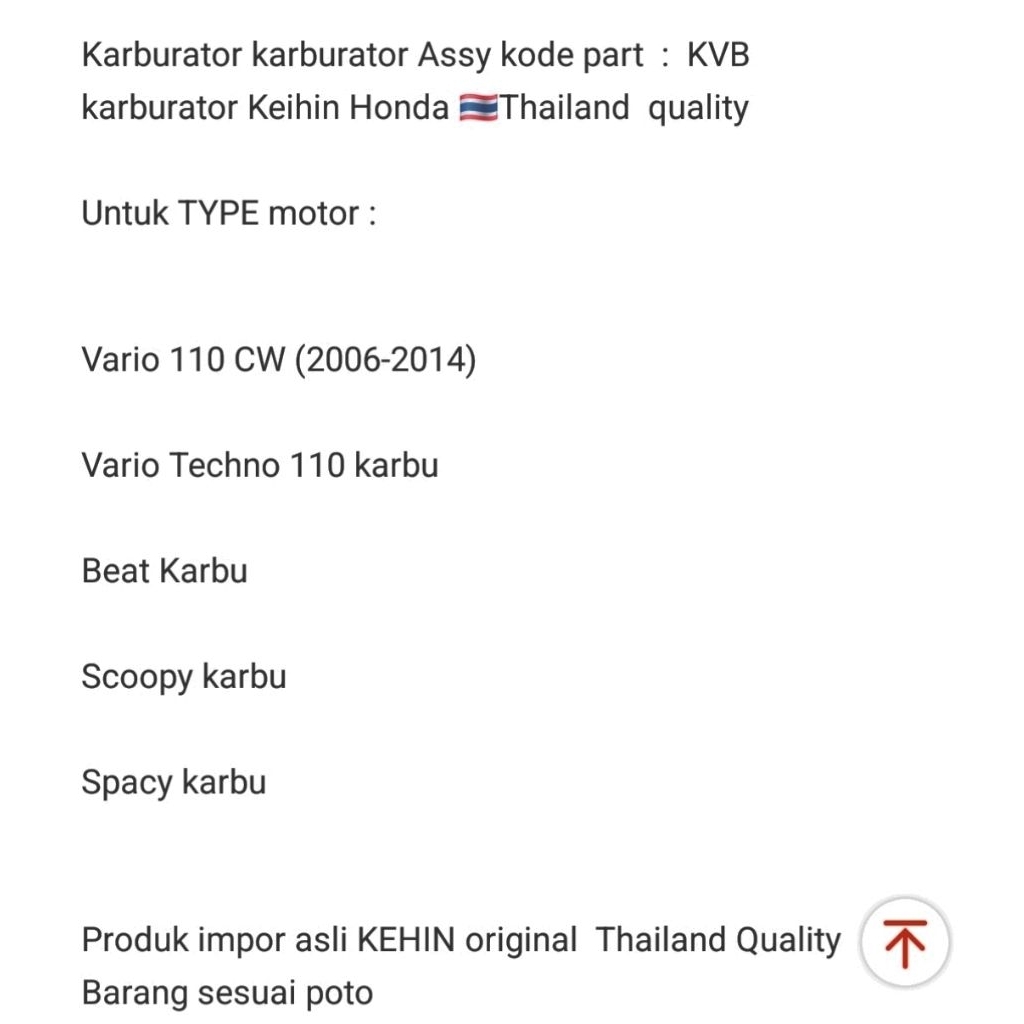 KARBURATOR A55Y KVB VARIO 110 OLD VARIO TECHNO 110 VARIO 110 CW BEAT KARBUSCOOPYKARBUSPACYKARBU (KEIHIN FOR HONDA THAILA