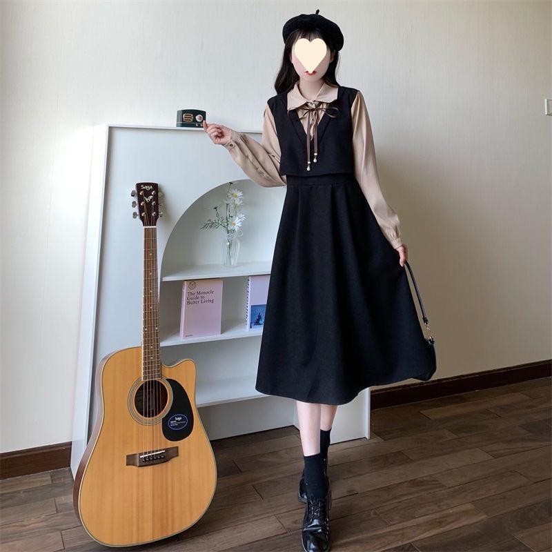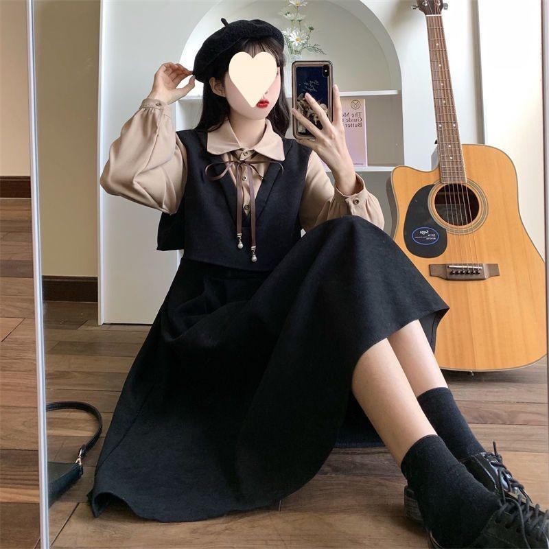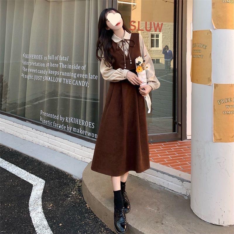 DR104 PANJANG - MIDI DRESS LENGAN PANJANG WANITA MODEL KERAH DAN PITA