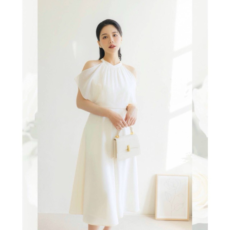 [ADA SIZE JUMBO] D1644 PROSPERO KOREAN STYLE VINTAGE MIDI DRESS SIMPLE POLOS PESTA KONDANGAN HALTER NECK