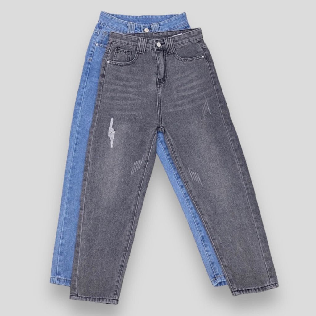 Celana Jeans Wanita Highwaist Boyfriend Jeans Sobek