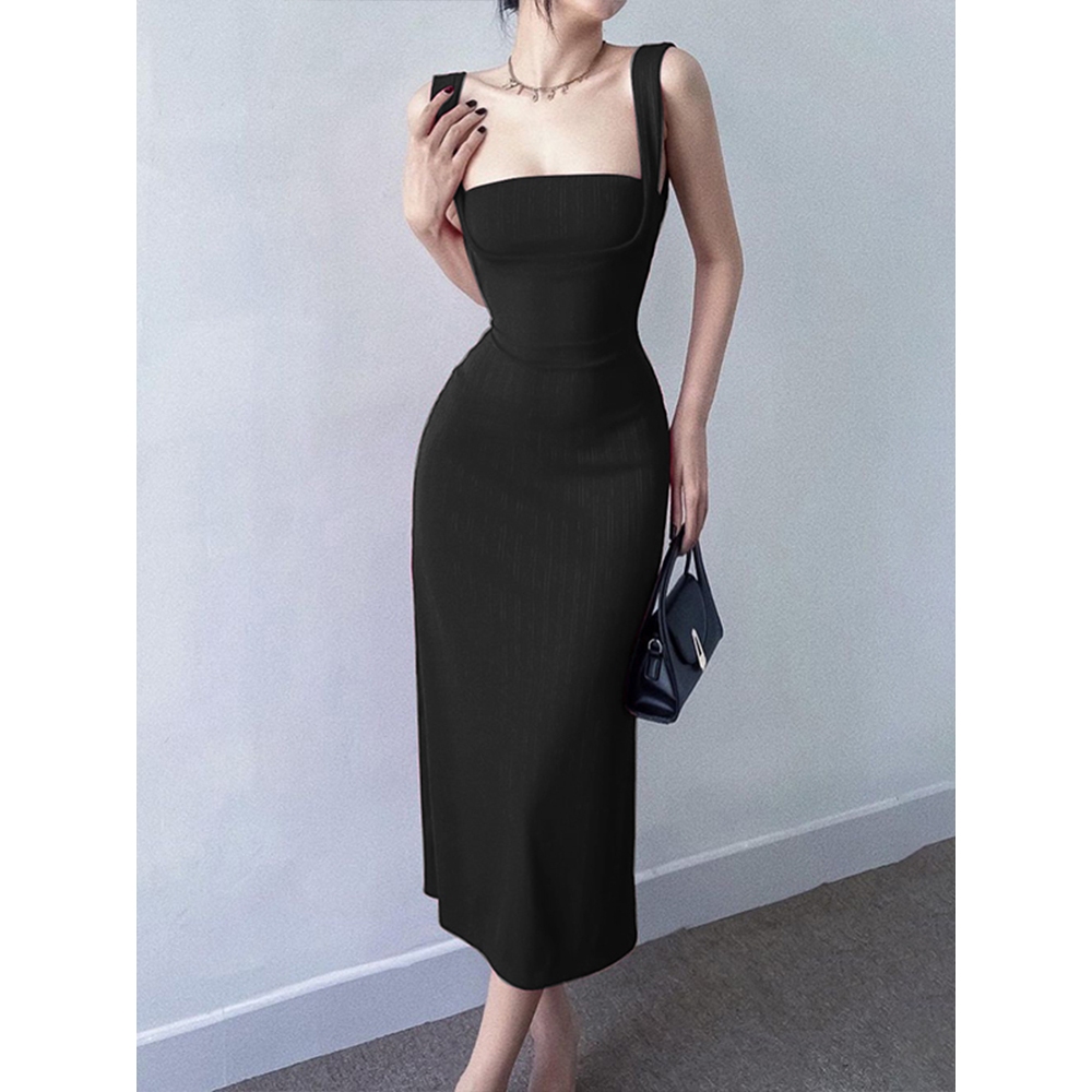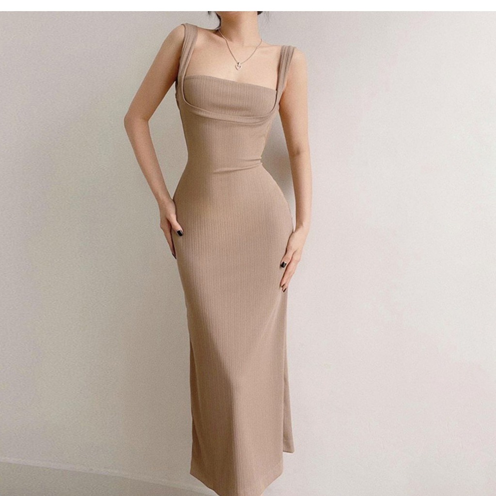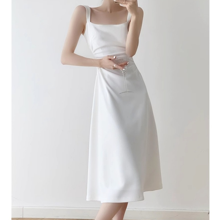 Putih Long Dress Korean Style Midi Cantik Ke Pantai Prom Elegant Party Inner Dress Tanpa Lengan Wanita Kekinian Dress Ko
