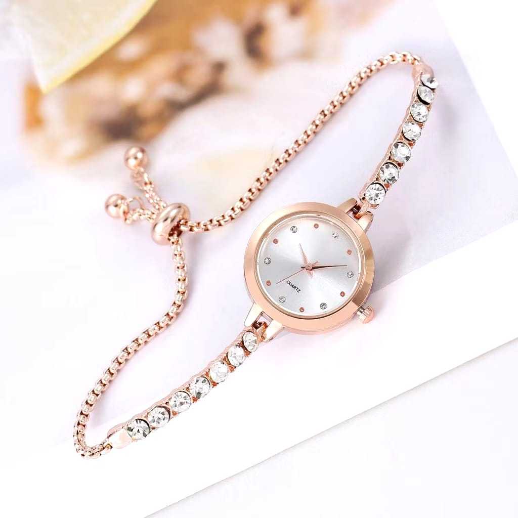 Jam Tangan Serut Mewah Gelang Serut Wanita Analog Quartz Adjustable Anti Air Rantai Stainless