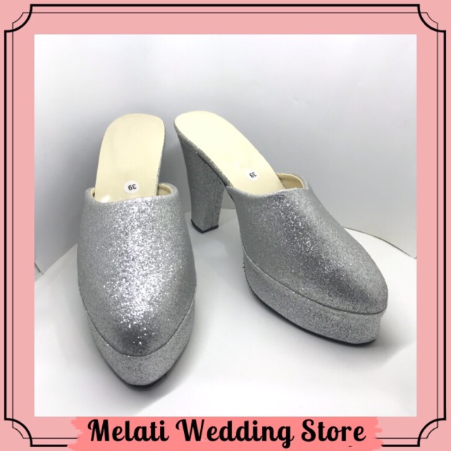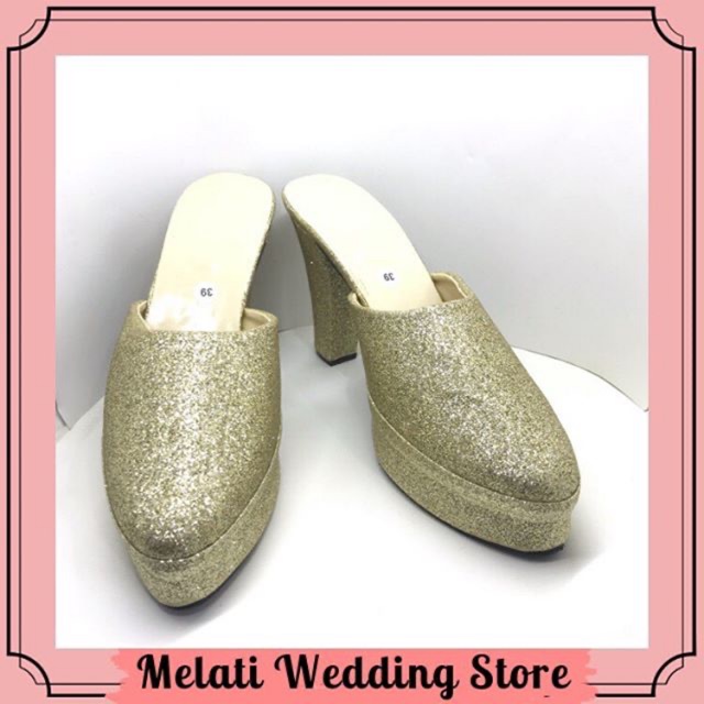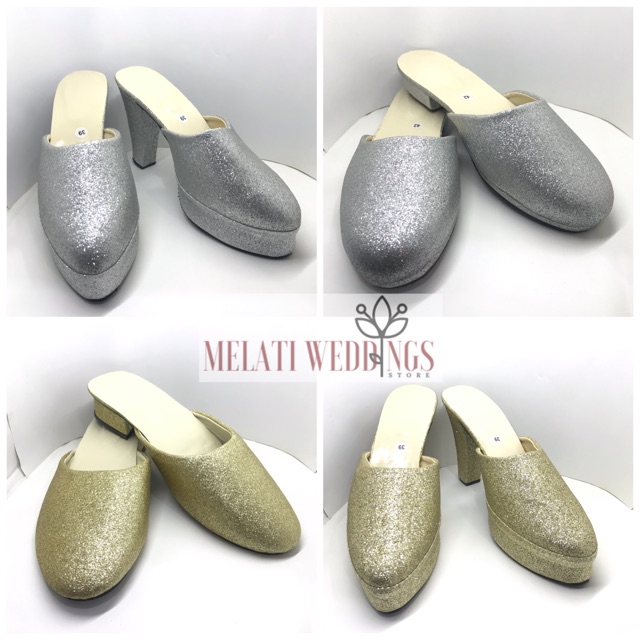 Slop glitter pengantin | sepatu wanita | sapatu pengantin