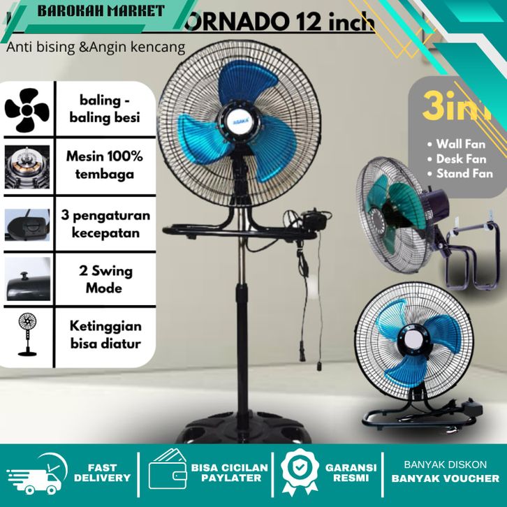 Kipas Angin Tornado Besi 12 inch 3in1 2in1 Kencang Hemat Daya