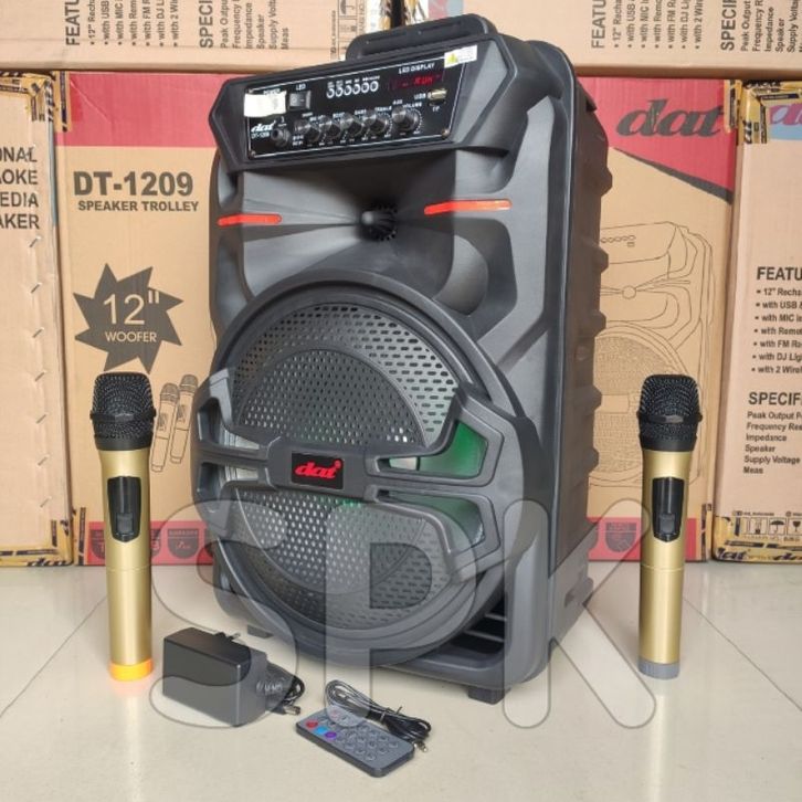 Speaker Portable DAT DT 1209 12 inch 2 Mic Wireless