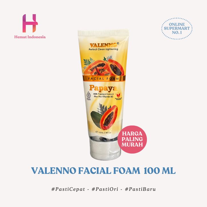 PEMBERSIH WAJAH VALENNO PAPAYA PLUS VIT E FACIAL FOAM PEMBERSIH WAJAH 100 ML 100ML SABUN CUCI MUKA SABUN PEPAYA