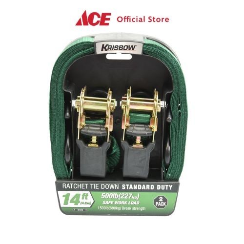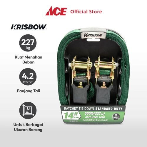 Ace Krisbow Tali Pengikat Barang Tie Down - Hijau Multifuncional Rope Ratchet Tie Down Aksesoris Pengikat Serbaguna