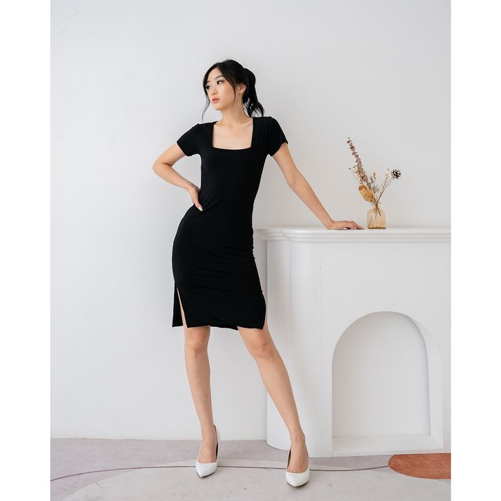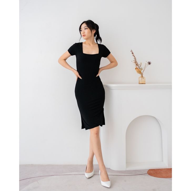 MINI DRESS WANITA LENGAN PENDEK WOMAN DRESS BODYCON POLOS HIGH QUALITY TERBARU