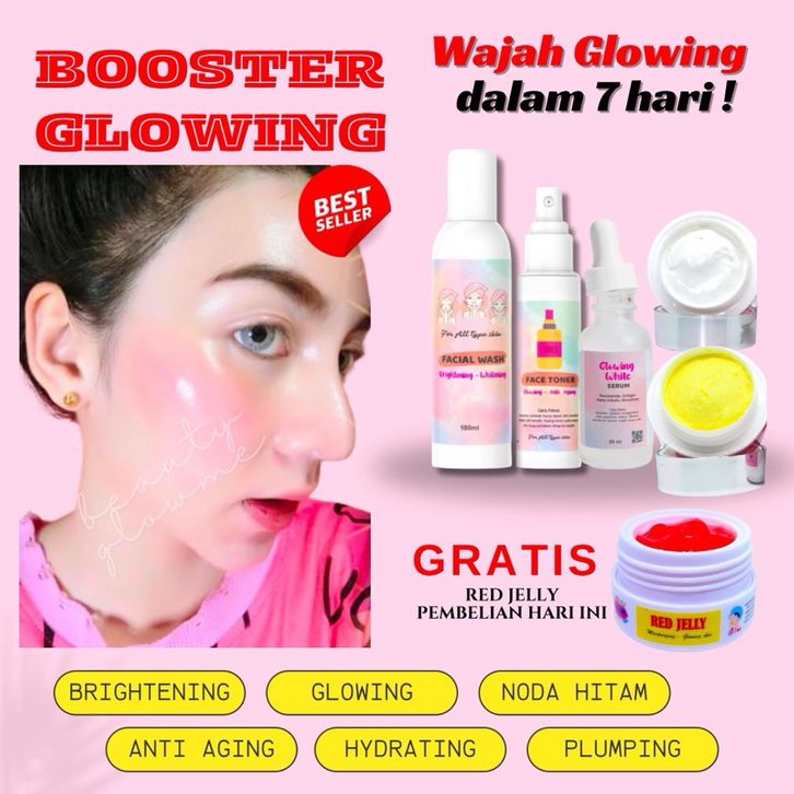 PAKET GLOWING BOOSTER SPF 50 MENGHILANGKAN BEKAS JERAWAT WHITENING KINCLONG 10 HARI SUSAH PUTIH PAKET SKINCARE BPOM