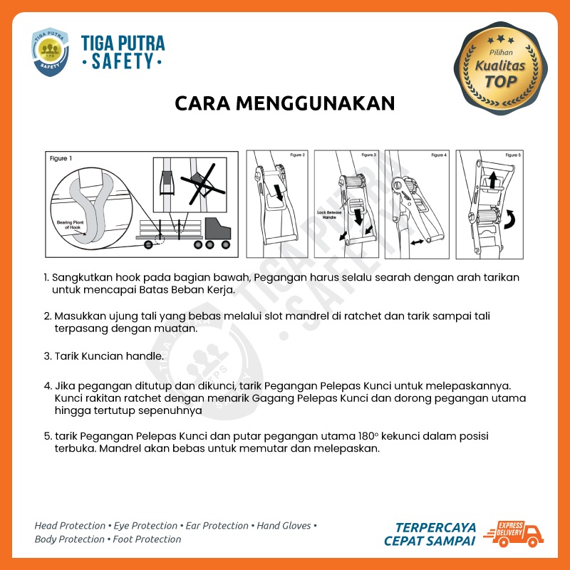 Ratchet Tie Down 5Ton x 10M Cargo Lashing Pengikat Barang Webbing 2"
