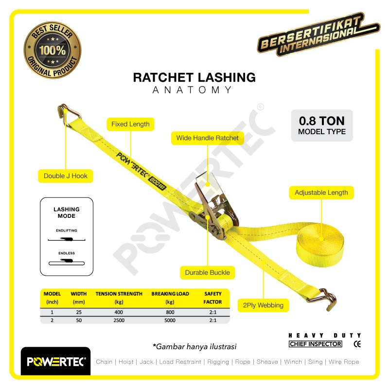 PowerTec Ratchet Tie Down Cargo Lashing Belt 1" x 5M Pengikat Barang
