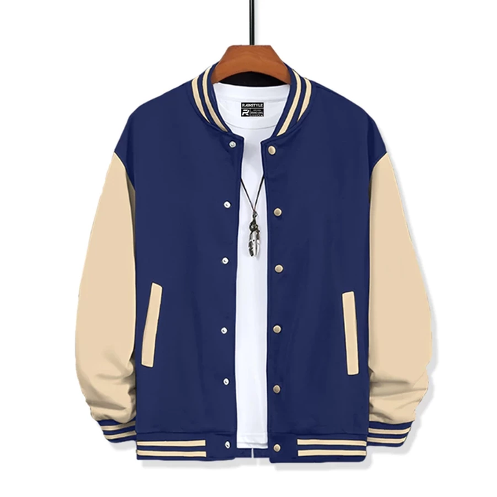 Jaket Varsity Polos Navy Putih Unisexx