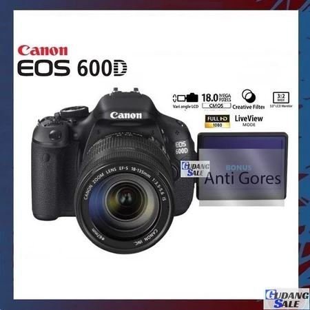 KAMERA DSLR CANON EOS 600D KIT SECOND MULUS PALING MURAH LAYAR VLIP FULL EFEK