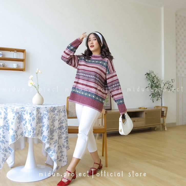 SWEATER WANITA KOREAN STYLE SWEATER RAJUT MOTIF TRIBAL KNITWEAR IMPORT KEKINIAN TERBARU