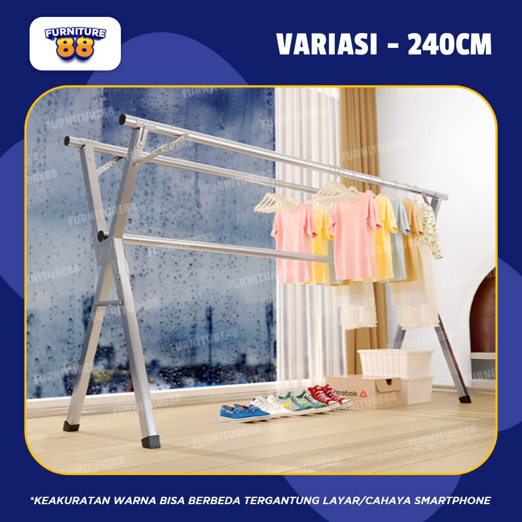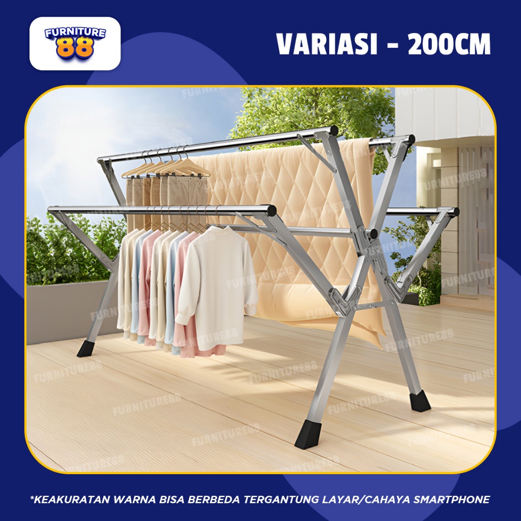 GANTUNGAN JEMURAN JUMBO JEMURAN BAJU LIPAT GANTUNGAN PRAKTIS STAINLESS 160, 200, 240CM - FURNITUR 88
