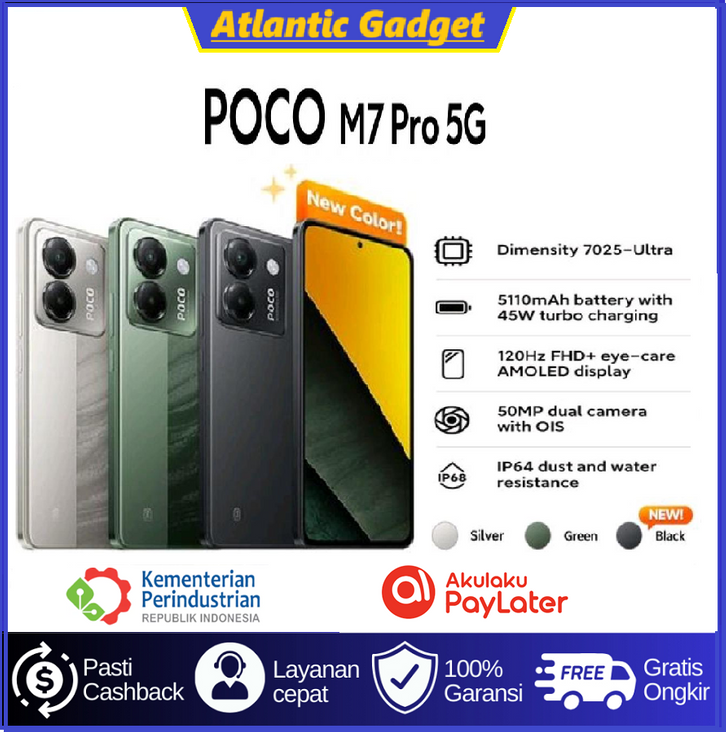 Hp Poco M7 Pro 5G RAM 8/256GB | MediaTek Dimensity 7025 Ultra | Layar 6.67" AMOLED 120Hz | Baterai 5110mAh 45W | NFC