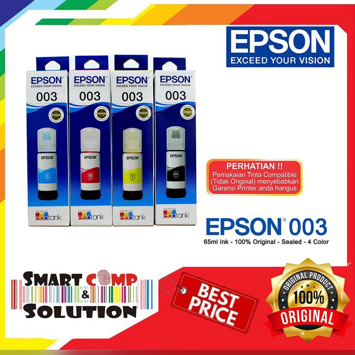 Tinta Printer Epson 003 Original YMCK L1110 / L1210 / L3110 / L3210 / L3150 / L3250 / L5190 / L5290