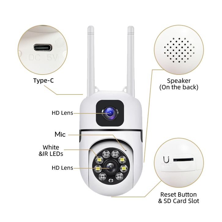 Gratis Ongkir - Outdoor Dual Lens Cctv Camera Kecil Hd 1080p Wi-fi Koneksi Nirkabel Penglihatan Malam Lensa Ganda Kamera