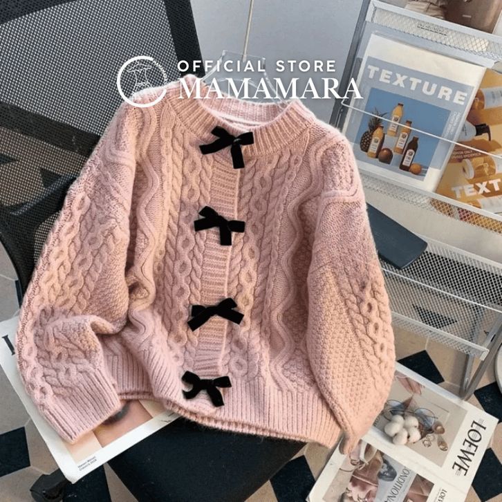 cardigan wanita kekinian cardigan korean style Cardigan Rajut Pita Besar Simple Leher Bulat