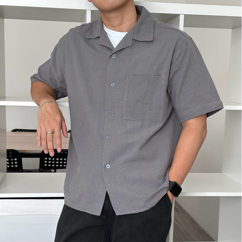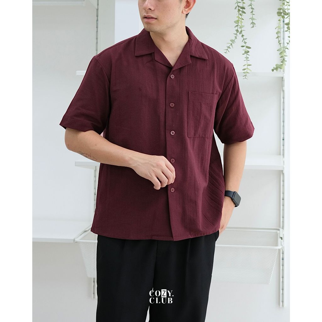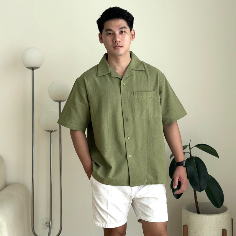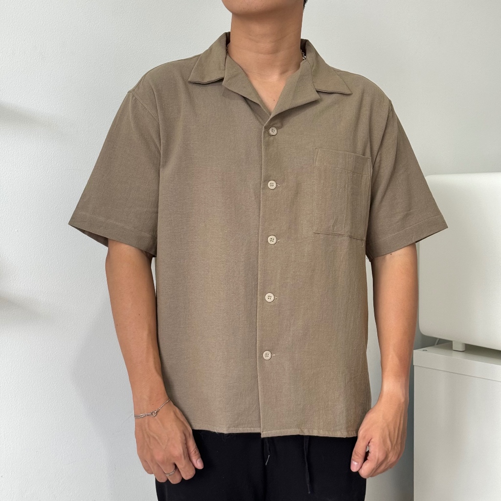 SHIRT | KEMEJA LINEN BOWLING POLOS PRIA KERAH TERBUKA LENGAN PENDEK | 81