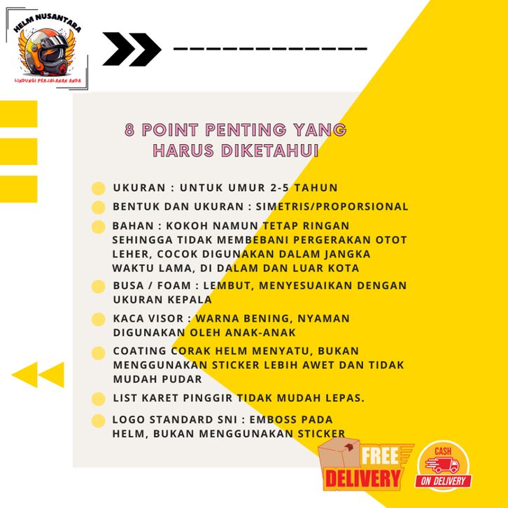 Helm Motor Anak Usia 2 3 4 5 6 7 8 Tahun Perempuan laki laki SNI Terbaru