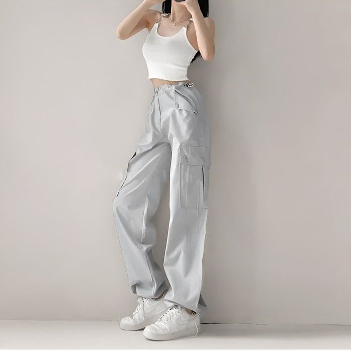 celana gunung Celana Cargo Wanita Celana Panjang Wanita Cargo Fungsional Serbaguna Untuk Gaya Kasual MERLINZ celana