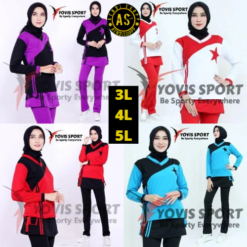 Baju Set Olahraga Senan Wanita Muslim Jumbo Setelan Aerobic Zumba Cewek Merah Putih 17 Agustusan