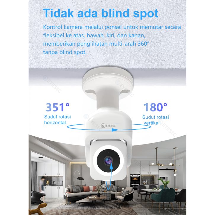 Gratis Ongkir - Eyesec Cctv Lampu Bohlam Es09 Ip Kamera 360 Derajat Panoramic Deteksi Gerakan Manusia + Micro Sd