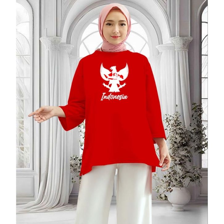 baju merah putih agustusan BAJU ATASAN WANITA OVERSIZE LENGAN 7/8 / 1 LAMBANG GARUDA R BAJU ATASAN 7/8 KAOS WANITA