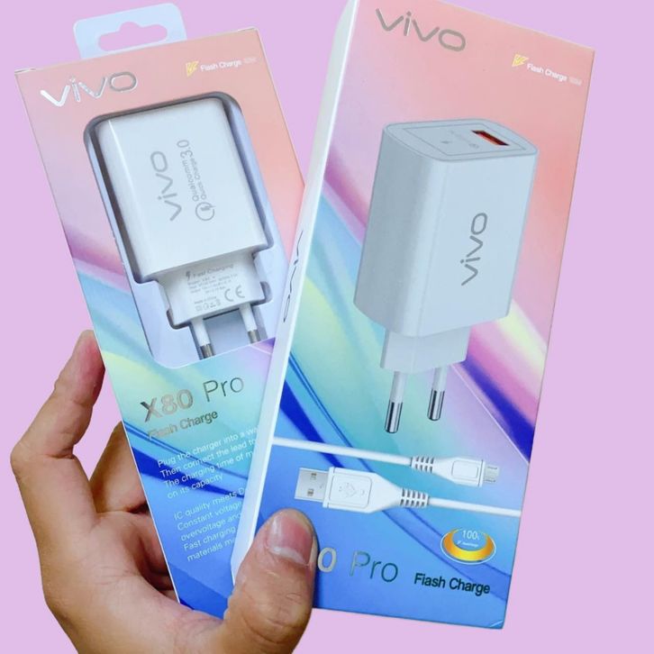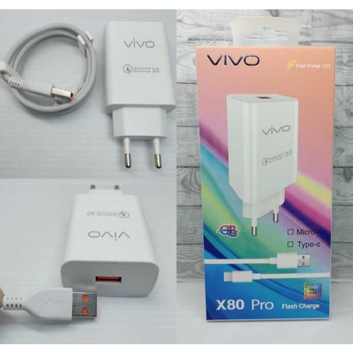 Gratis Ongkir - Charger Viv* X80 Pro Flash Charge 9v-2a Micro Usb & Type C Fast Charging Casan Adapter Original