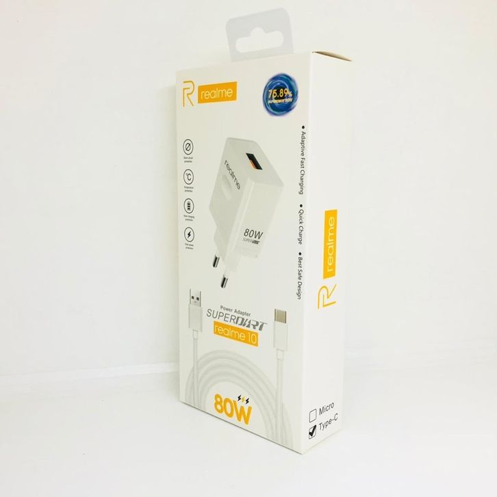 Gratis Ongkir - Charger Realme 80w Super Vooc Support Fast Charging Micro Usb Cable & Tipe C Cable