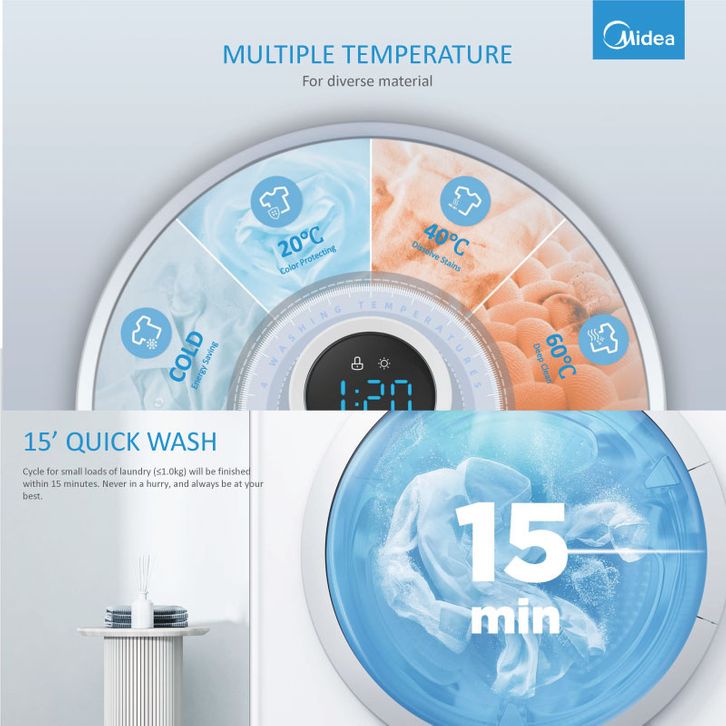 Midea Mesin Cuci Front Loading Kapasitas 8,5 kg Model MF100W85BN - Bukaan Depan