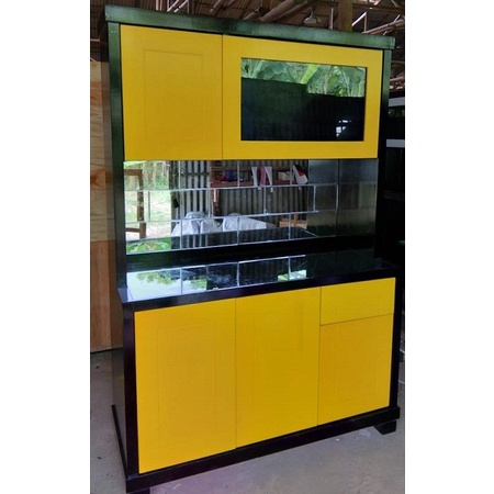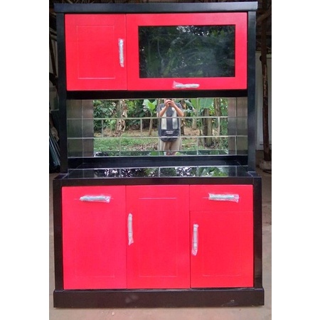 Lemari sayur lemari makan 3 pintu hidrolik finishing kaca