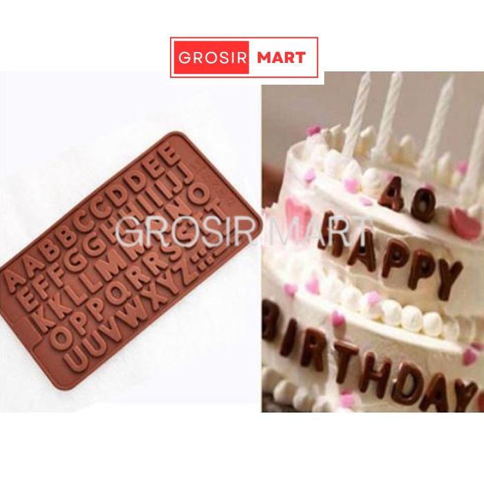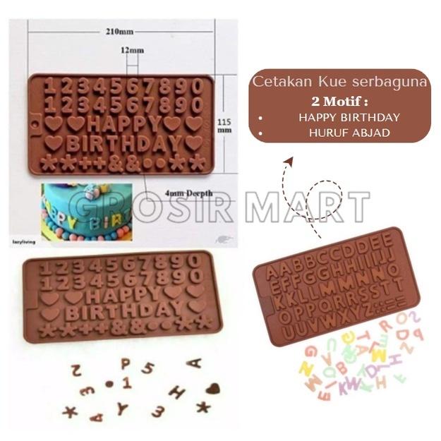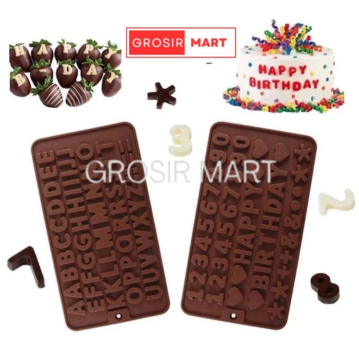 CETAKAN PUDING JELLY ES FONDANT KUE COKLAT SILIKON HURUF ABJAD HAPPY BIRTHDAY HBD DEKORASI ALAT BAKING TOOLS C HBD ANGKA WARNA COKLAT
