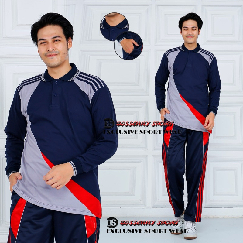 Setelan Kaos Olahraga Lengan panjang unisex Stelan Baju Senam pria wanita