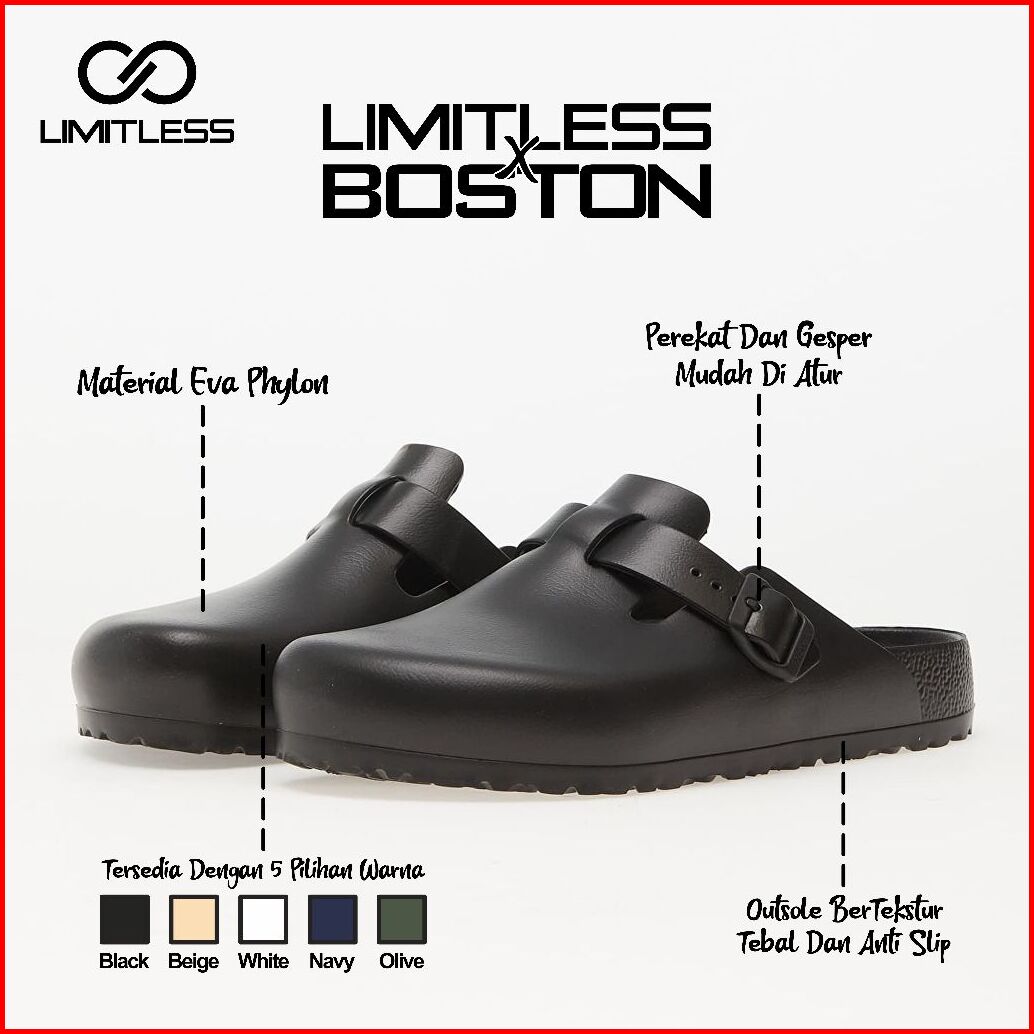 Limitless Sandal Slip On Pria Dewasa Boston Eva Kekinian Sendal Slop Cowok Kasual Premium Terbaru - Size 36 - 44