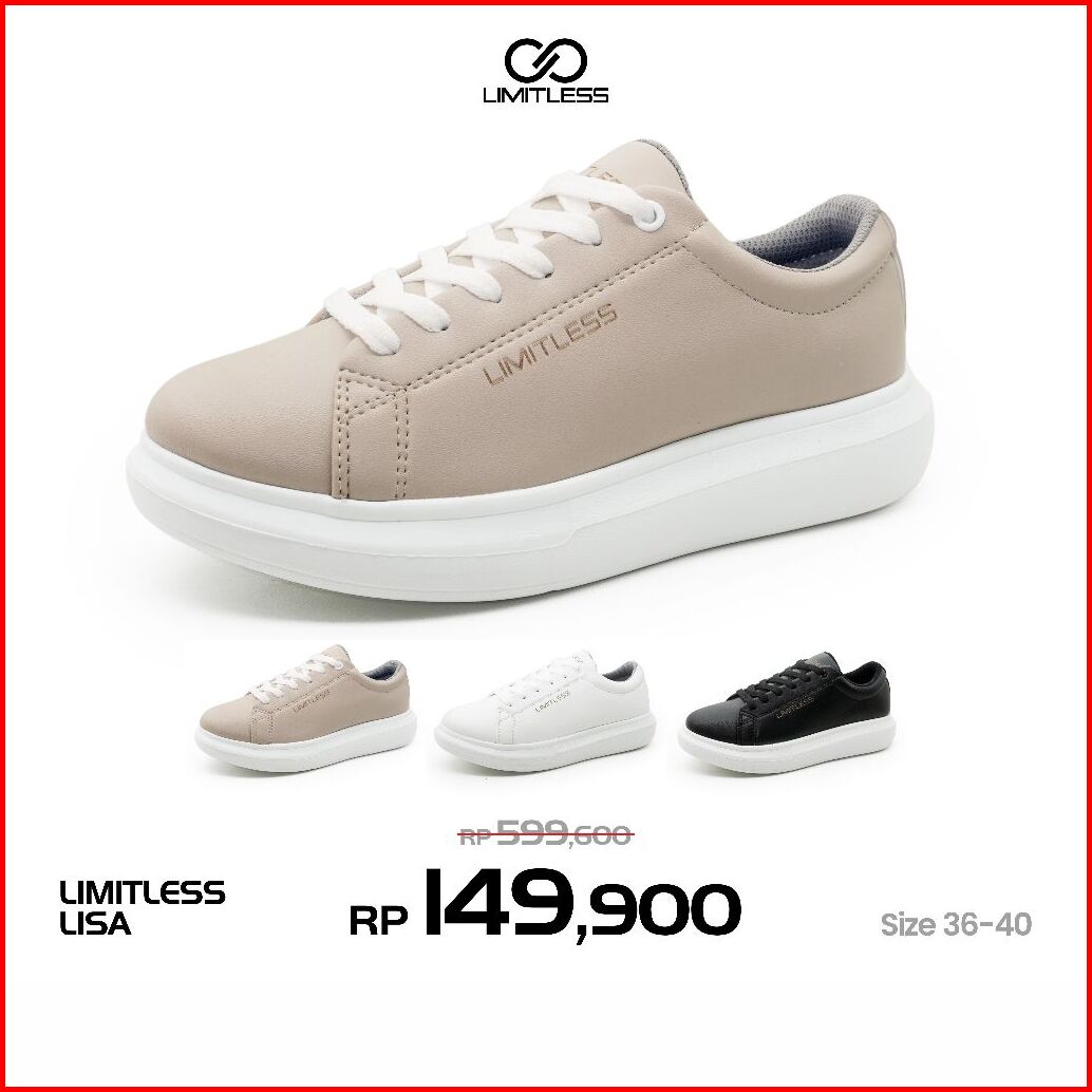 Limitless Sneakers Wanita Lisa Sport Bertali Sneaker Cewek Terbaru Kekinian Hitam - Size 36 40